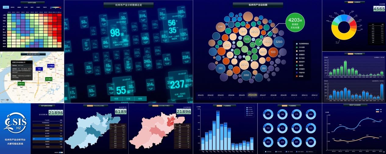 2014年12月,恒天軟件與杭州市標準化研究院就市產業(yè)分析平臺系統(tǒng)以及產業(yè)數(shù)據(jù)大屏可視化開發(fā)項目正式簽署合作協(xié)議。該產業(yè)分析平臺是杭州標準化研究院的下屬項目,主要是基于該院維護的市組織機構代碼庫進行數(shù)據(jù)可視化Web應用的開發(fā),旨在將類型多、數(shù)據(jù)龐雜、耦合性高的數(shù)據(jù)集借助圖形化手段以直觀的形式呈現(xiàn)。
