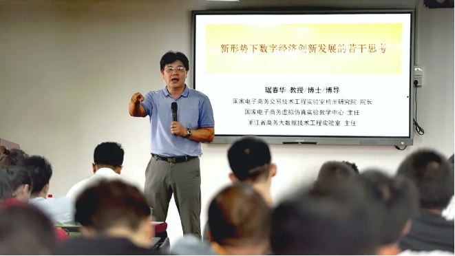 浙江工商大學研究生院院長琚春華教授作《工業(yè)互聯(lián)網與數字貿易》的主題演講報告