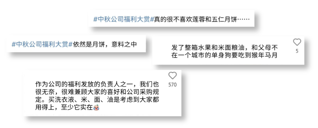 節(jié)日福利是展現(xiàn)企業(yè)文化、增強(qiáng)企業(yè)凝聚力的重要形式。每逢佳節(jié),企業(yè)行政都要“絞盡腦汁”,但統(tǒng)一采購的福利總是難以滿足所有員工的需求。打開社交平臺搜索相關(guān)討論,依然是“聽取吐槽一片”。