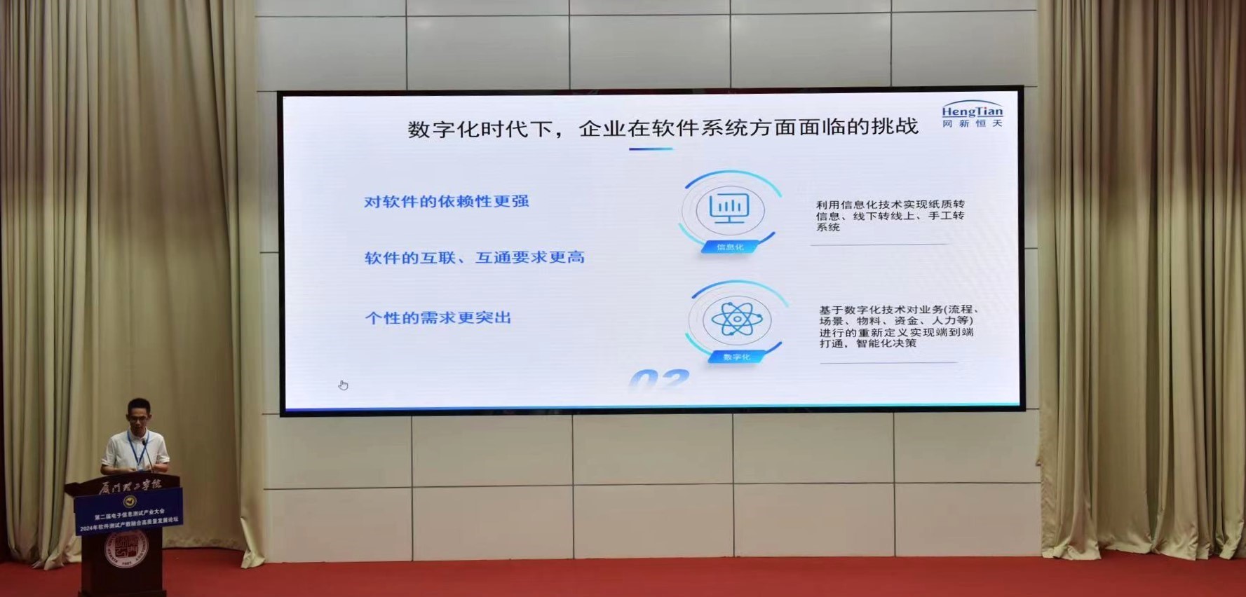 7月19日,第二屆電子信息測(cè)試產(chǎn)業(yè)大會(huì)暨2024年軟件測(cè)試產(chǎn)教融合高質(zhì)量發(fā)展論壇在廈門理工學(xué)院隆重召開。網(wǎng)新恒天作為中國電子商會(huì)信息工程測(cè)試專業(yè)委員會(huì)會(huì)員單位受邀參會(huì),公司副總裁祝曉春作為專委會(huì)智庫專家發(fā)表演講。