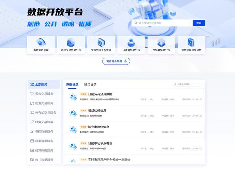基于在能源數(shù)字化領(lǐng)域的豐富實(shí)踐經(jīng)驗(yàn)和技術(shù)儲(chǔ)備,網(wǎng)新恒天推出了電力數(shù)據(jù)開放平臺(tái),為市場運(yùn)營機(jī)構(gòu)與經(jīng)營主體提供高效協(xié)同的數(shù)據(jù)服務(wù)。針對市場經(jīng)營主體,平臺(tái)提供系統(tǒng)層面的標(biāo)準(zhǔn)化數(shù)據(jù)接口對接服務(wù),促進(jìn)數(shù)據(jù)驅(qū)動(dòng)下的電力市場業(yè)務(wù)水平提升;針對市場運(yùn)營機(jī)構(gòu),平臺(tái)支持?jǐn)?shù)據(jù)服務(wù)的統(tǒng)一管控,實(shí)現(xiàn)數(shù)據(jù)流通全流程可管可控、合規(guī)透明。2024年12月,該平臺(tái)已在某省級(jí)電力交易中心成功落地應(yīng)用,截至目前對外開放了近20個(gè)數(shù)據(jù)接口,開放數(shù)據(jù)量超48萬次,其業(yè)務(wù)賦能價(jià)值獲得了客戶的高度評(píng)價(jià)。