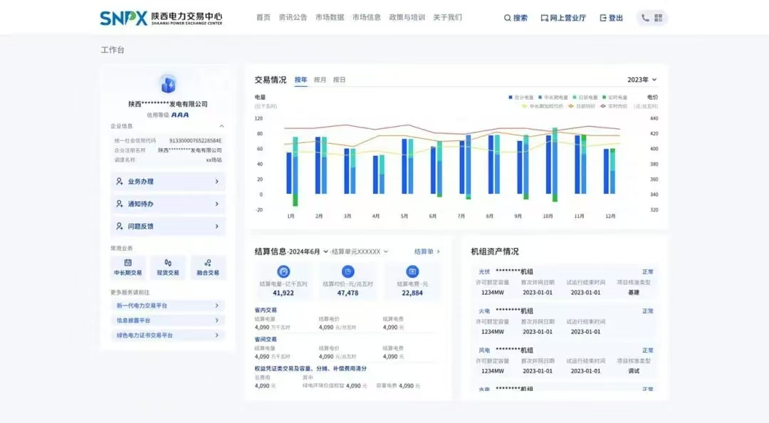 平臺聚焦市場主體業(yè)務(wù)訴求與差異化需求,針對實(shí)際業(yè)務(wù)場景設(shè)計(jì)開發(fā)了個(gè)性化工作臺,市場主體登錄后可查看本企業(yè)注冊、交易、結(jié)算等信息,動態(tài)跟蹤市場參與情況,快速響應(yīng)市場變化,實(shí)現(xiàn)“一屏掌控全局”。